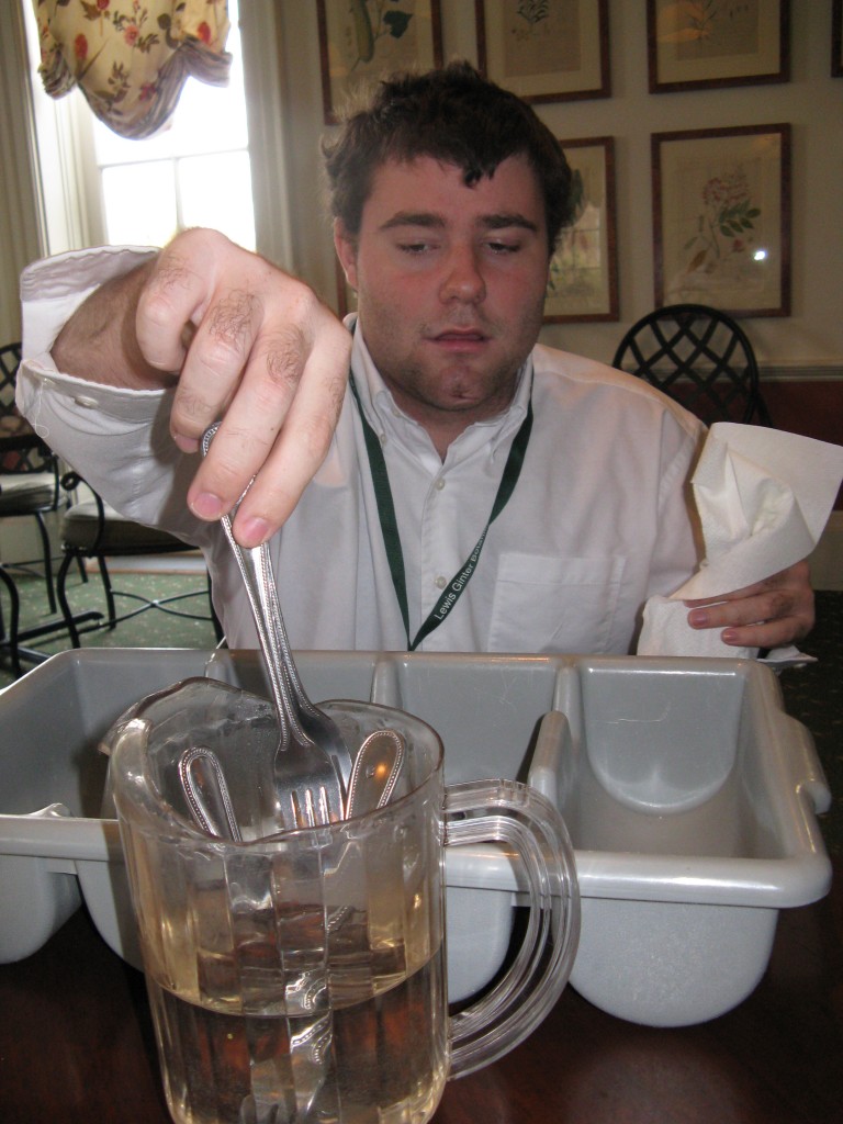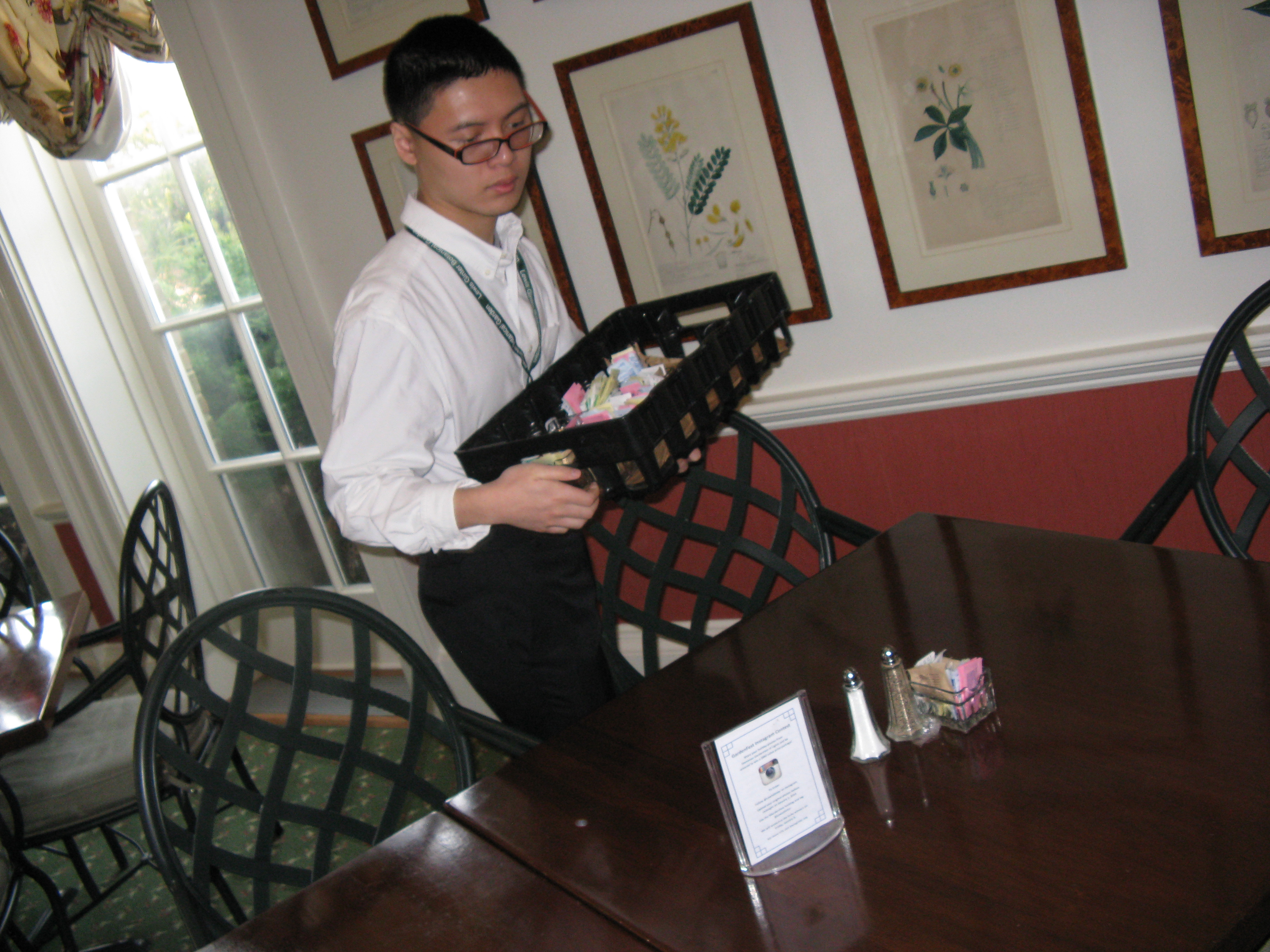 Another student, Nathan, just recently started in the program. He tells me about his other job sites through CoWEP and describes the different tasks he has done. Here in the Garden Café, “I put the sugars in the right place. I wipe down the tables.” Nathan’s teacher, David Kern, shares with me that one day when Nathan was wiping tables, he took the initiative to start wiping down the chairs as well, going above and beyond expectations. I was excited to hear about that.
