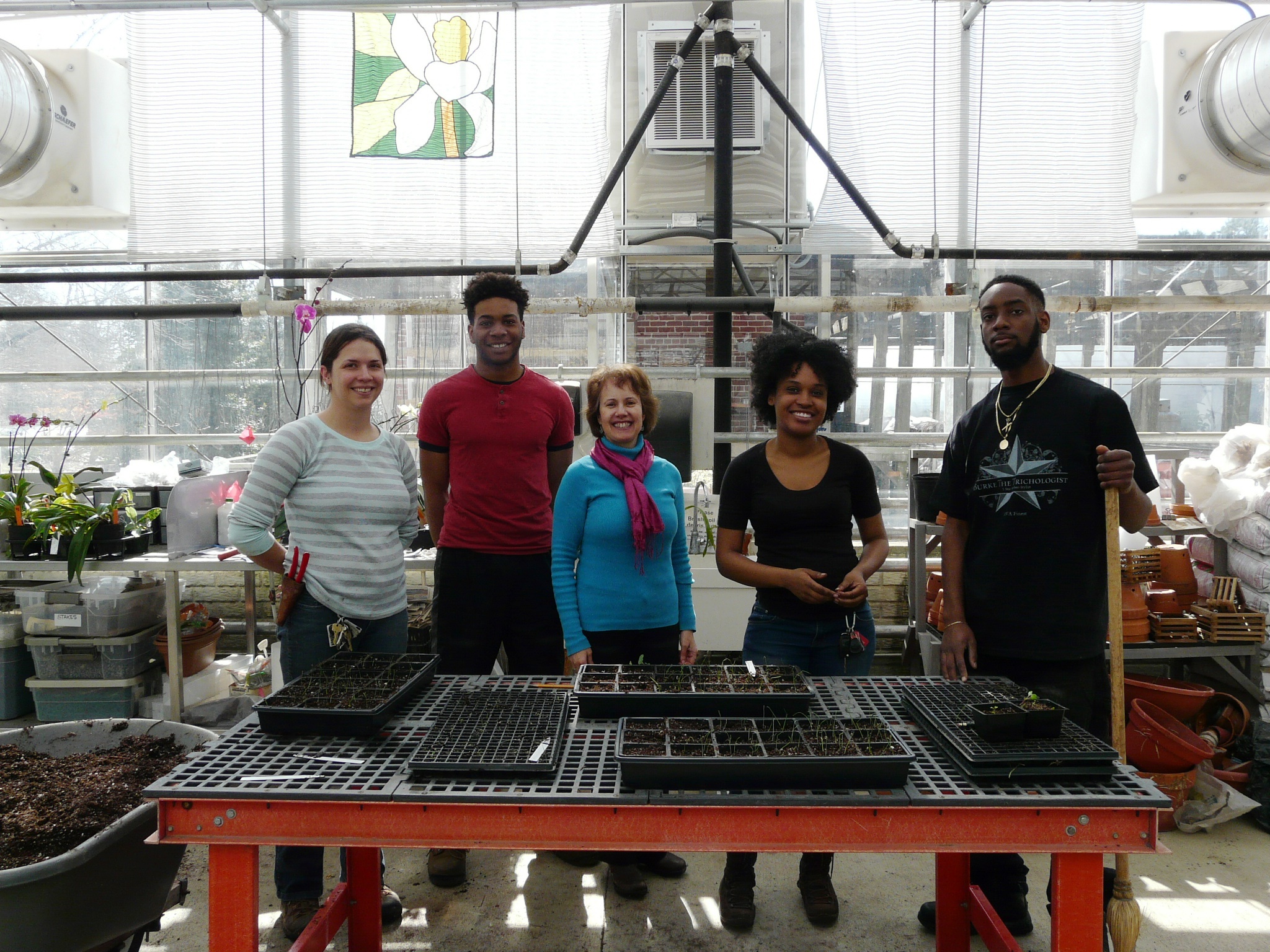 Today volunteers from HandsOn Greater Richmond helped Lewis Ginter Botanical Garden staff prepare for the spring growing season in the Community Kitchen Garden. Since the weather has been too cold to plant anything outside, volunteers assisted with repotting seedlings in the greenhouse.