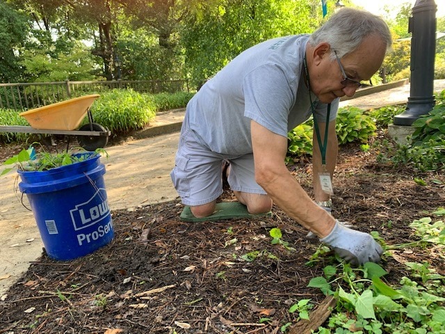 Volunteer Buz Sawyer volunteers multiple days a week in a variety of capacities and often in the Children’s Garden.