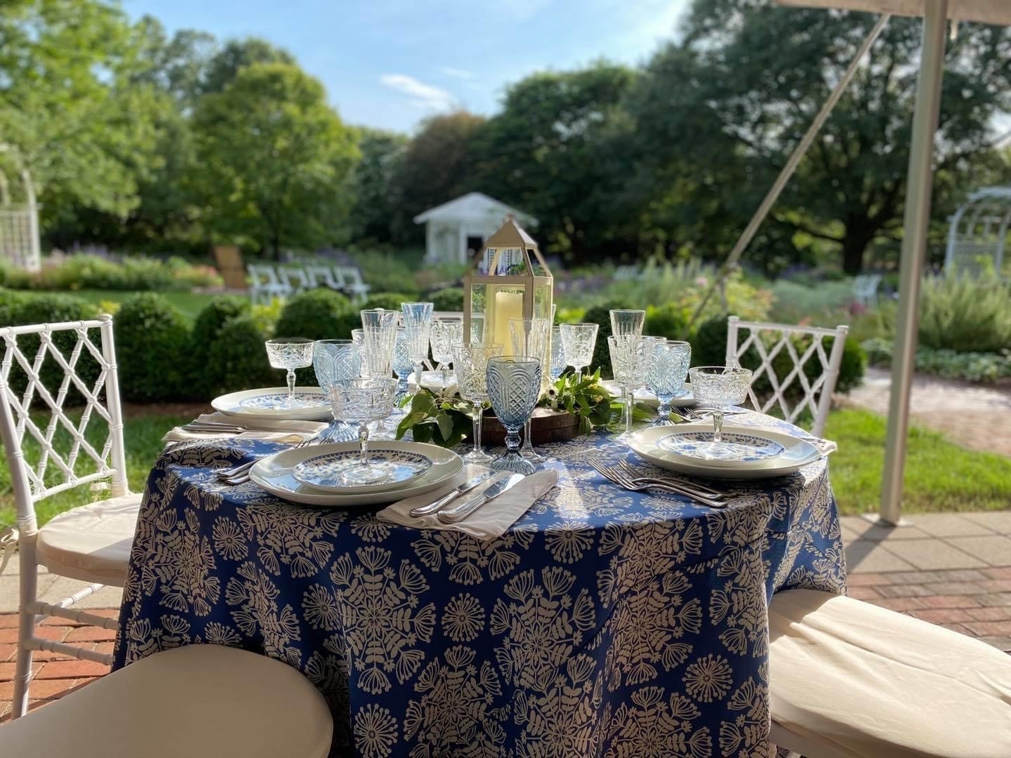 A stunning tablescape provided by Classic Party Rentals, on display outside under the tent at Bloemendaal House.