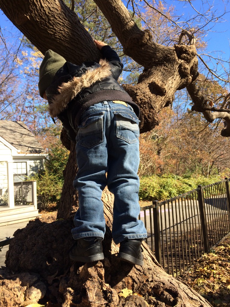 I could see the learning happening, the wheels clicking. The children collected different colored and different shaped leaves, they looked at blooms and at birds. I could see the thrill and excitement of seeing all that could be seen from the top of the Children’s Garden Tree House. I think I picked up at least half of the 17 children up so they could get a better look at the bird’s eye view of the Garden from the tree house. I set them down, only to take this picture.