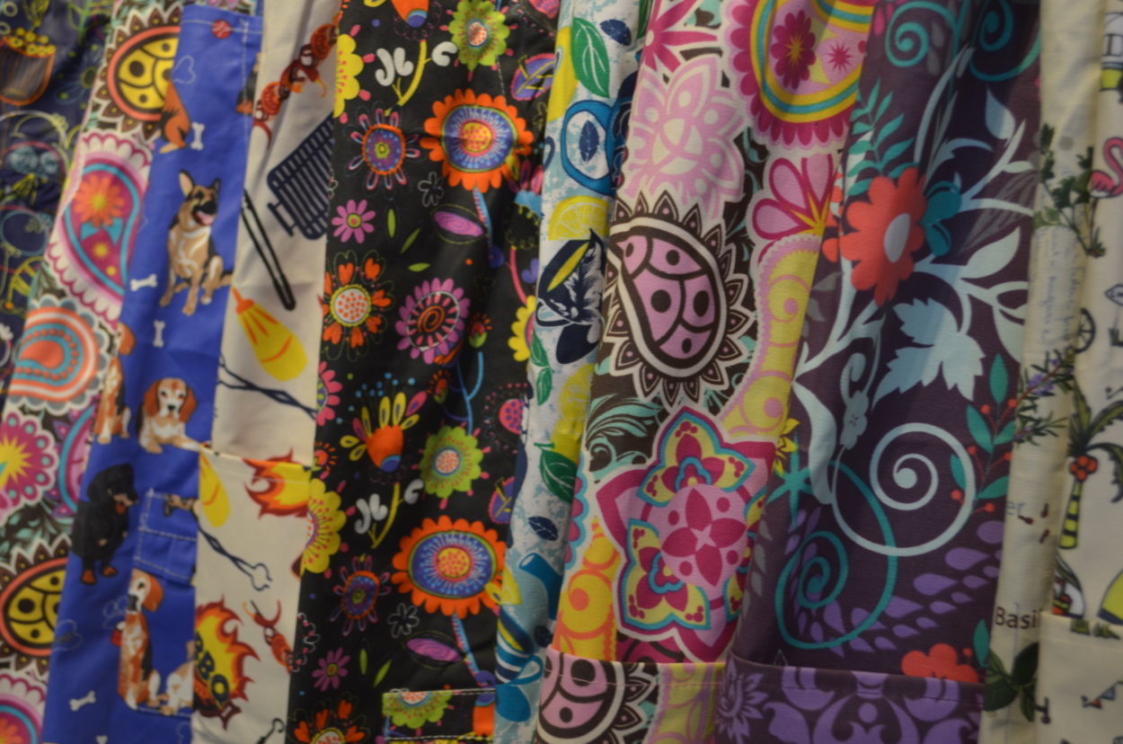 Here are some of the differently printed aprons you can choose from. Each apron is $27.95. Get a matching oven mitt for only $17.95!